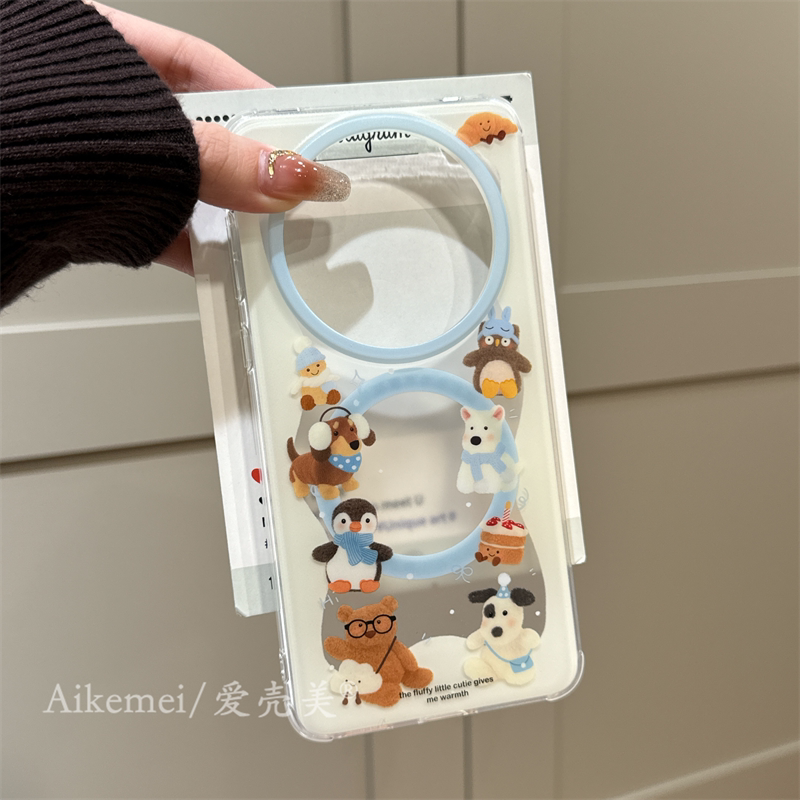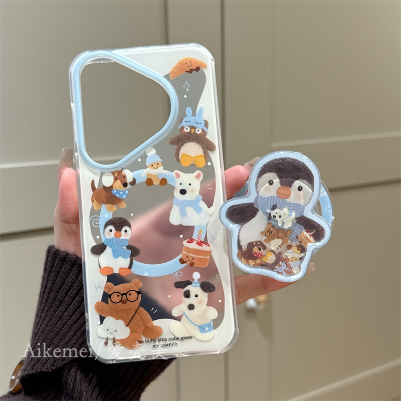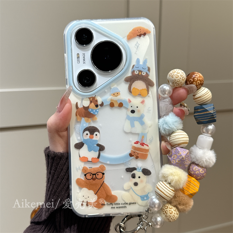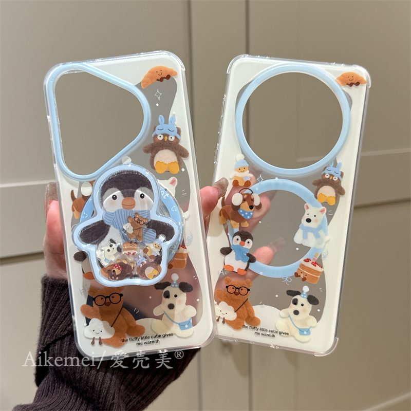 适用华为pura70pro+手机壳可爱卡通pura80pro+围巾企鹅小熊mate80promax摇摇乐磁吸支架mate70pro+链条防摔女