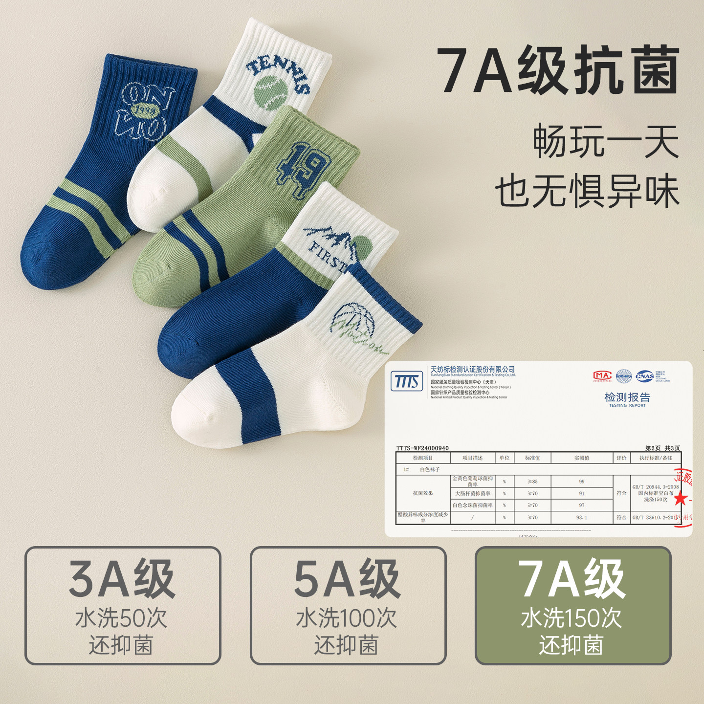 春秋儿童男童袜子无骨抗起球7A抗菌防臭吸汗男孩运动学生中筒潮袜