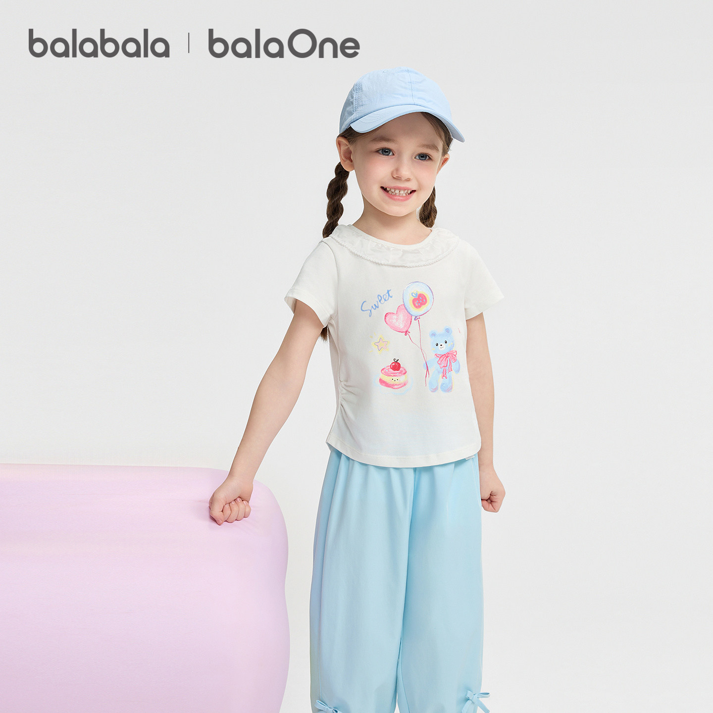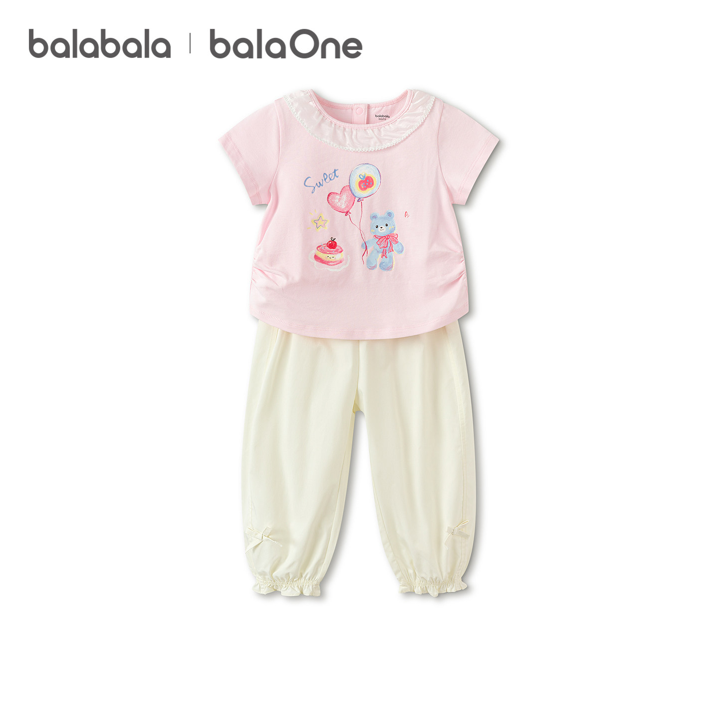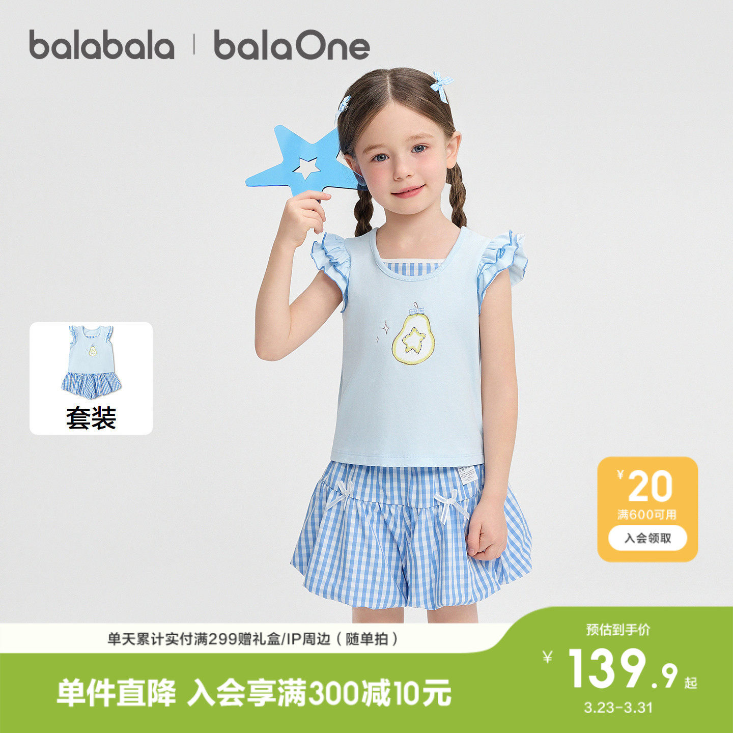 巴拉巴拉女童短袖套装儿童宝宝两件套2026新款夏精致荷叶边上下装