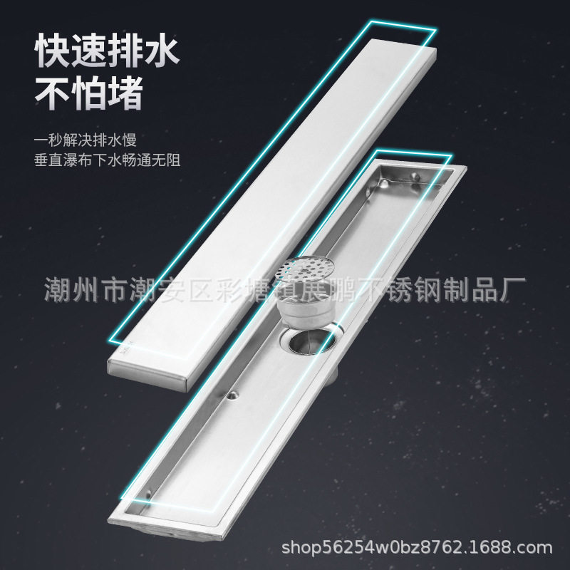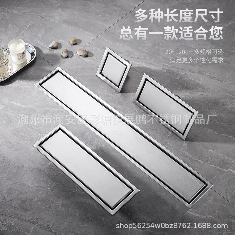 淋浴房304不锈钢长条隐形地漏 酒店阳台大排量长方形加厚防臭地漏