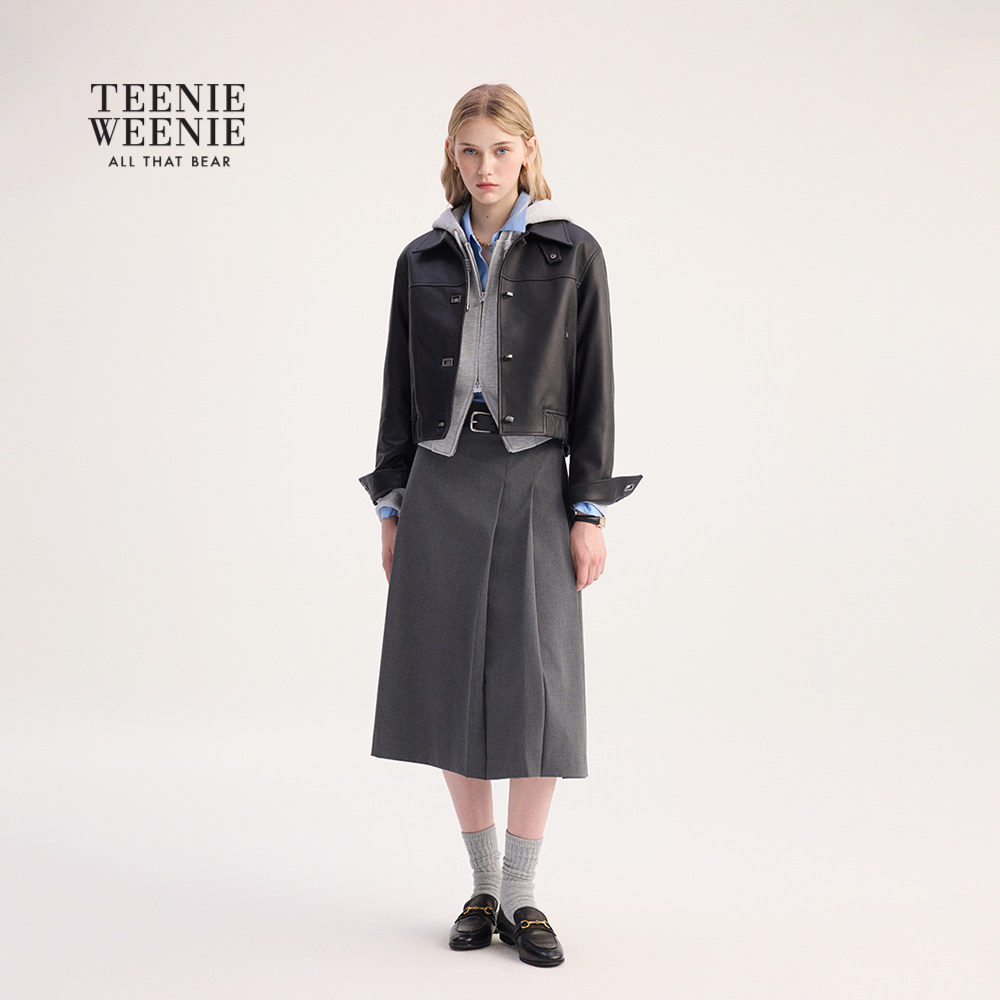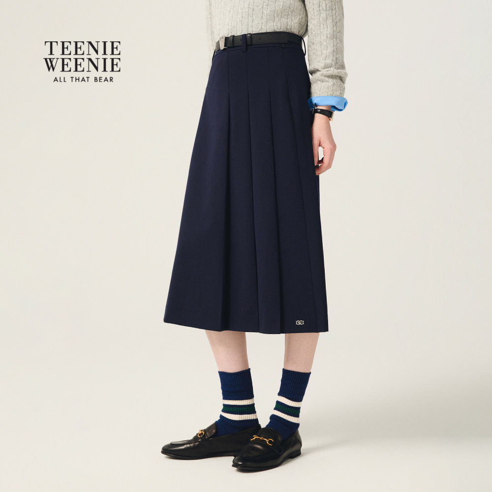 TeenieWeenie小熊女装半身裙2025年秋季新款气质通勤中长款百褶裙