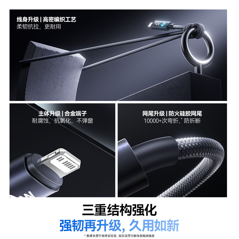 倍思适用苹果17充电器线PD快充iPhone14充电线13promax自动断电16plus数据线ipad手机12充15typec转lightning