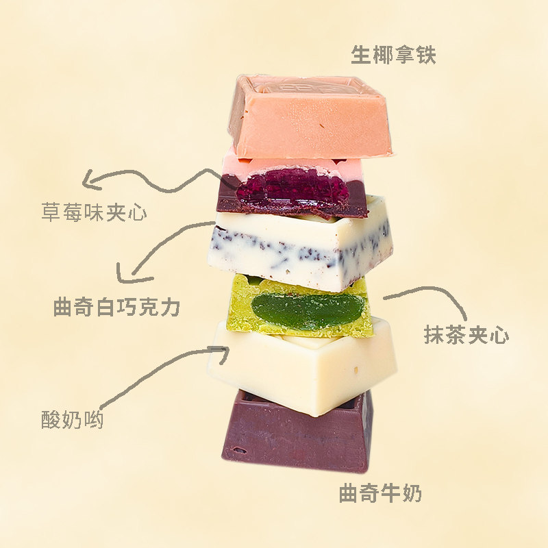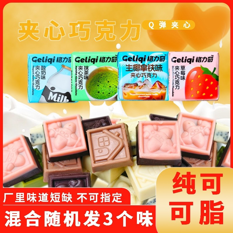 格力奇曲奇夹心白巧克力纯可可脂草莓酸奶抹茶小方块网红休闲零食