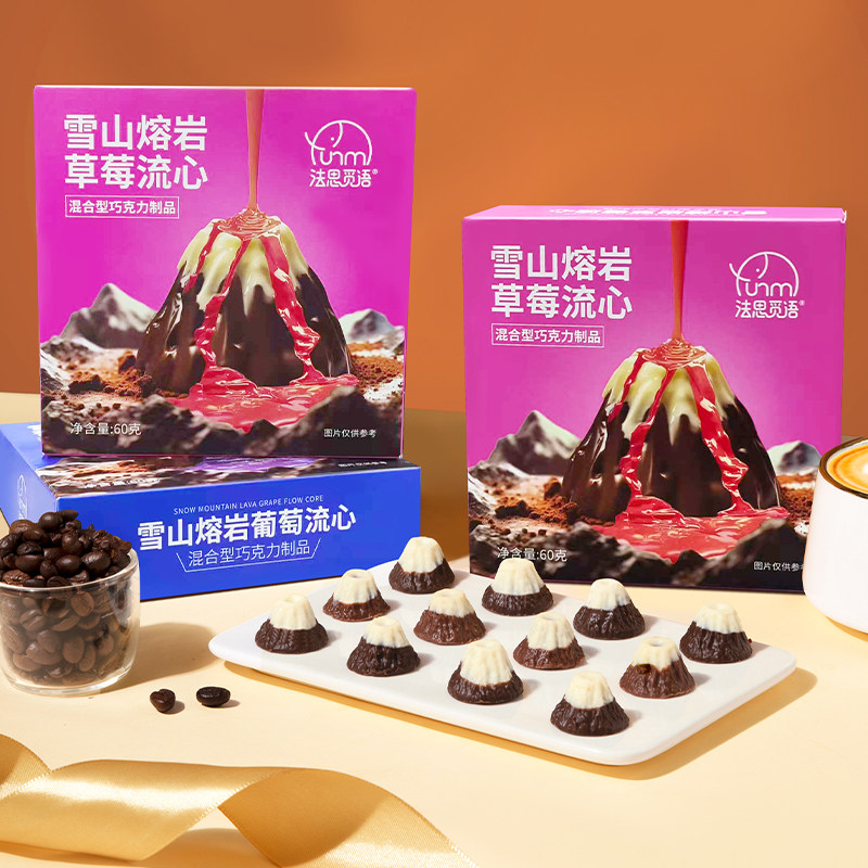 法思觅语雪山熔岩巧克力桶装零食 雪山熔岩草莓味流心巧克力1盒起