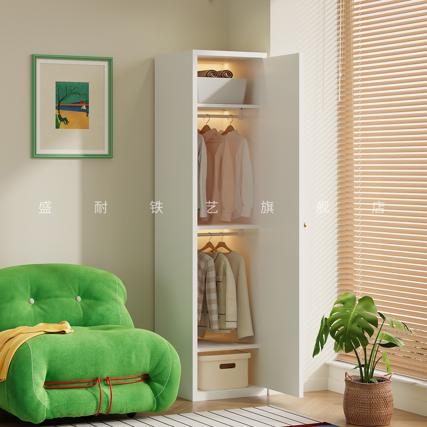 衣柜女孩卧室家用新款儿童卧室房间夹缝窄柜单人铁皮储物柜收纳柜