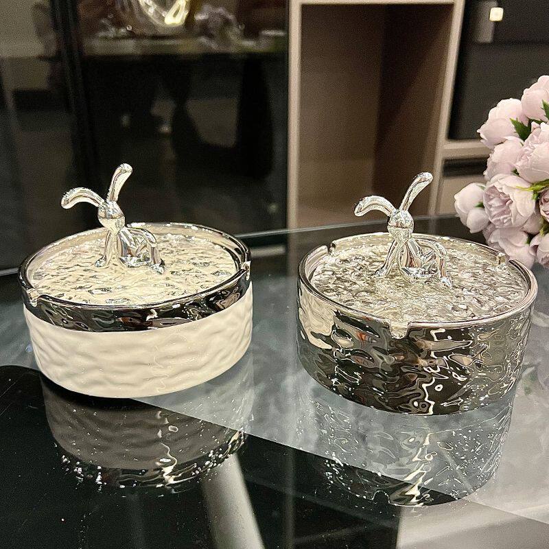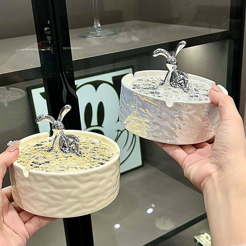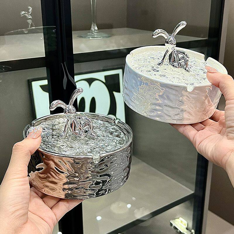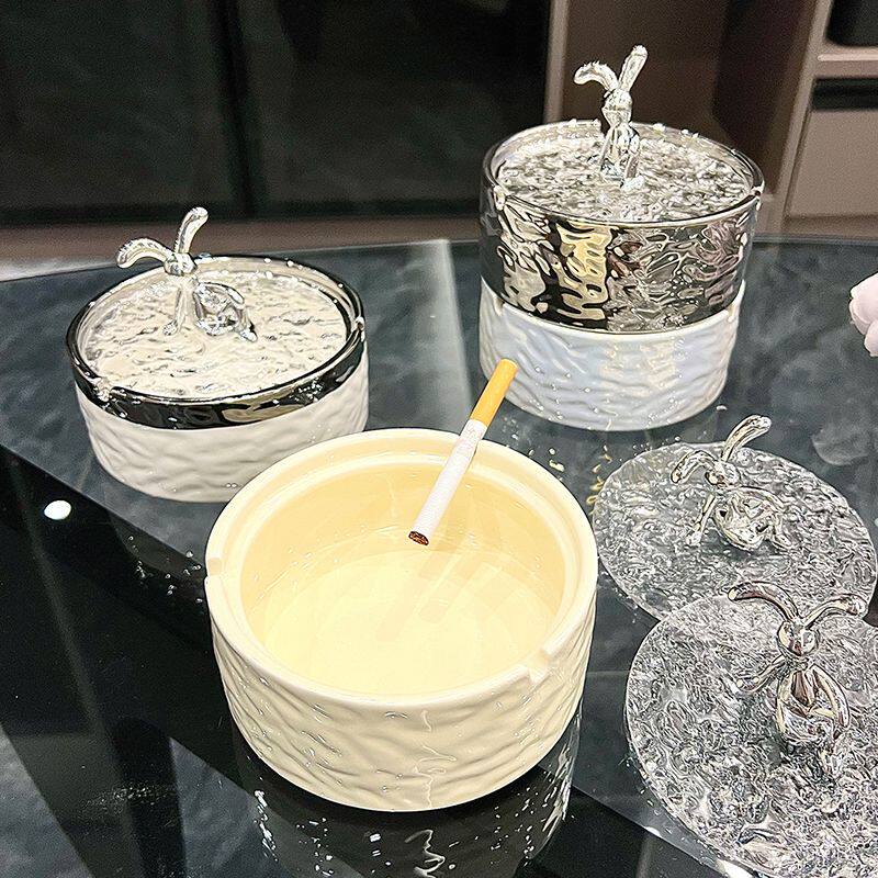 ins陶瓷烟灰缸带盖防飞灰家用客厅轻奢高颜值创意烟缸高级感奶油