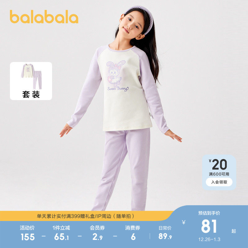 巴拉巴拉女童秋衣秋裤套装秋冬儿童保暖内衣打底睡衣冬季大童睡衣
