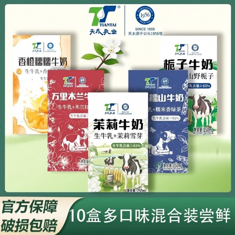 10盒混装天太茉莉雪芽牛奶栀子250ml*24盒整箱甜牛乳早餐乳业