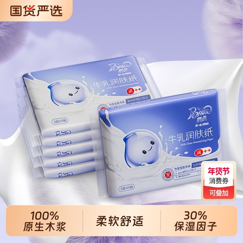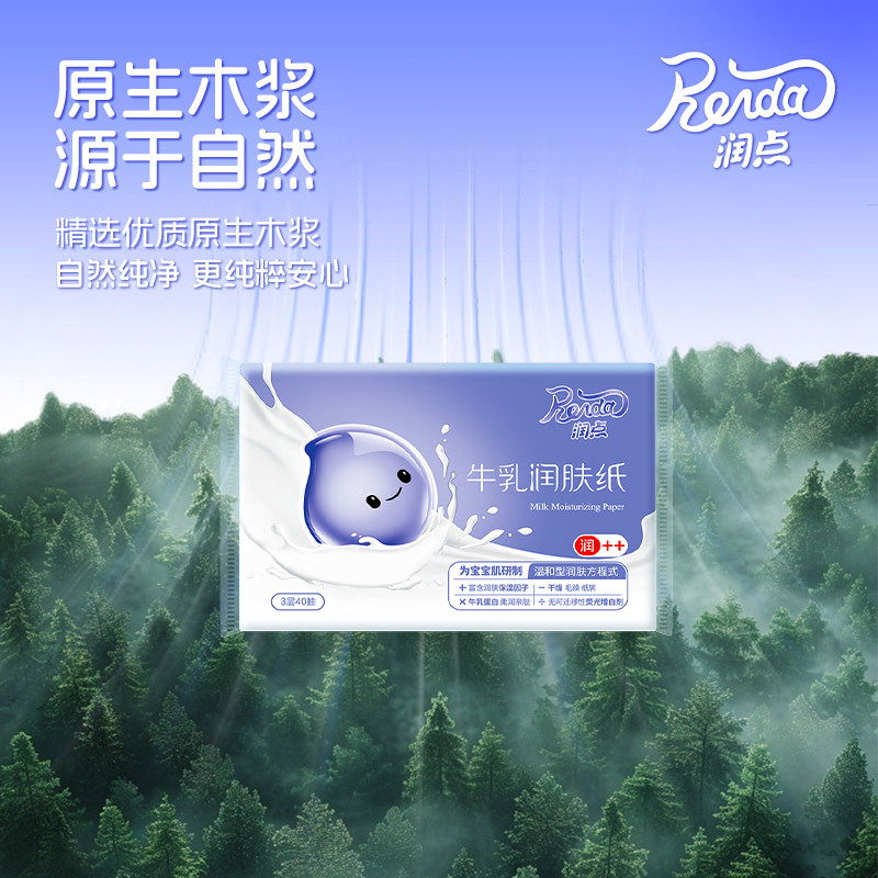 润点牛乳润肤纸40抽新生儿宝宝乳霜纸云柔巾婴幼儿专用保湿面巾纸