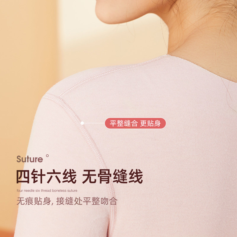女士德绒羊毛保暖内衣女加绒发热无痕打底大码秋衣秋裤套装秋冬季