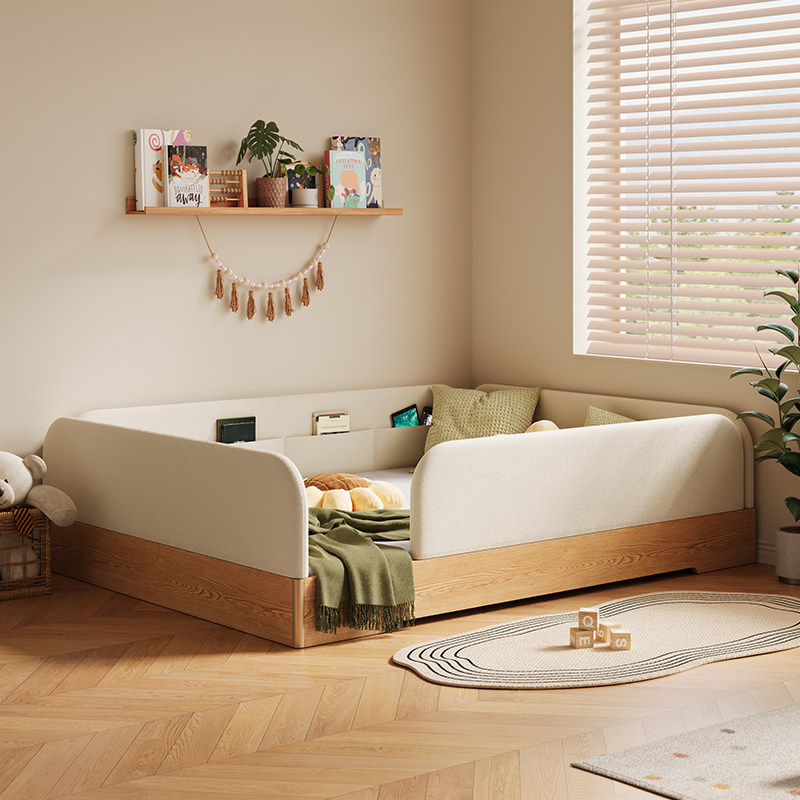 爱家智造实木儿童床蒙氏地台床小户型软包落地床简约单人家用小床