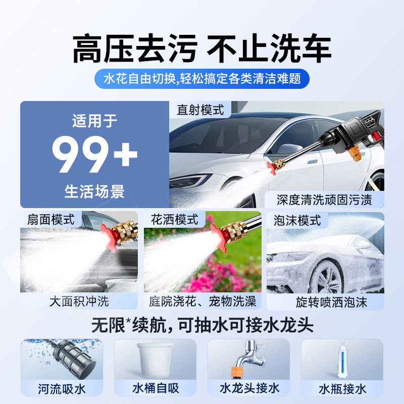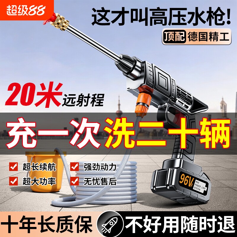 新款高压洗车水枪无线大功率家用强电池强力增压清洗机神器喷水枪