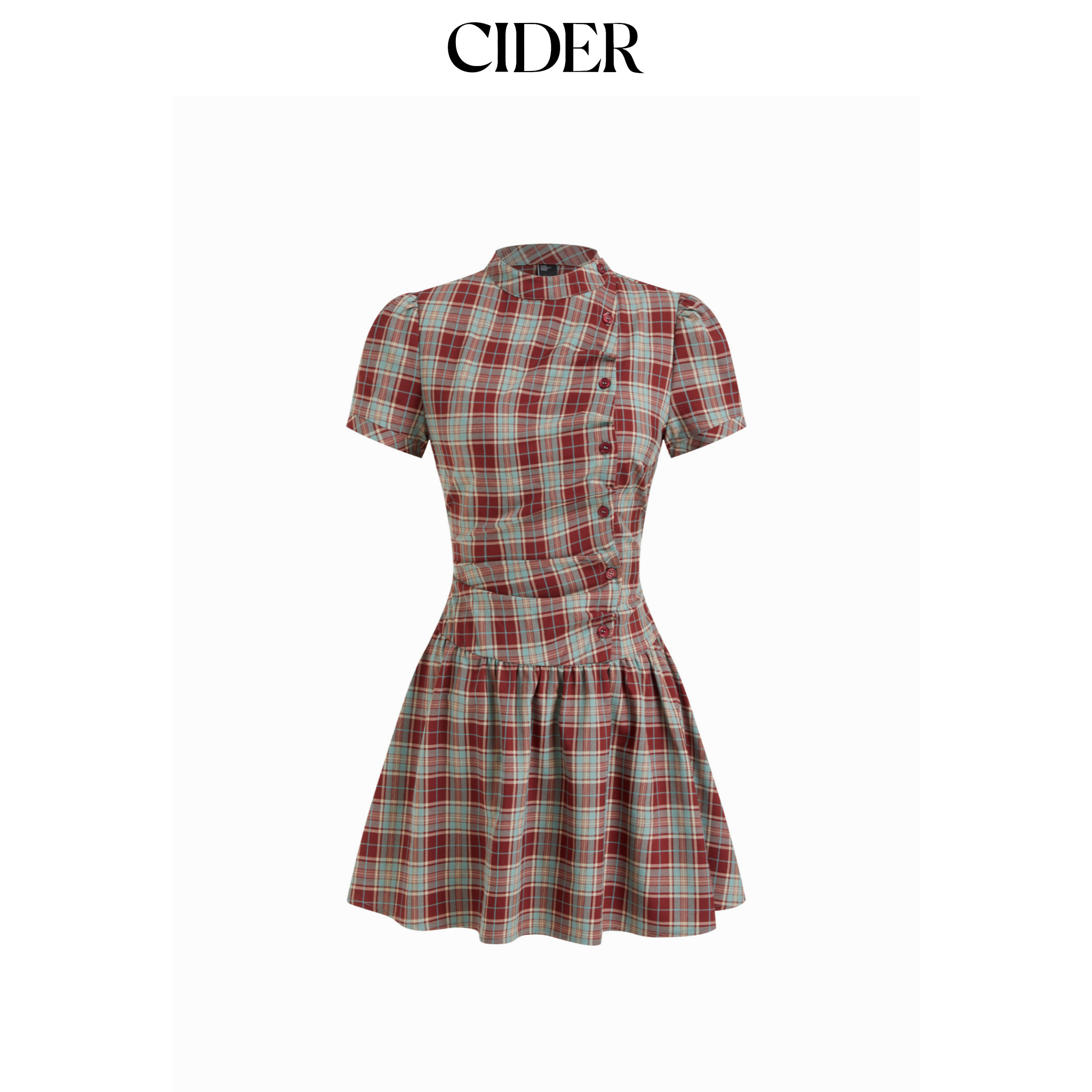 CIDER格纹翻领泡泡袖系带迷你连衣裙114992258