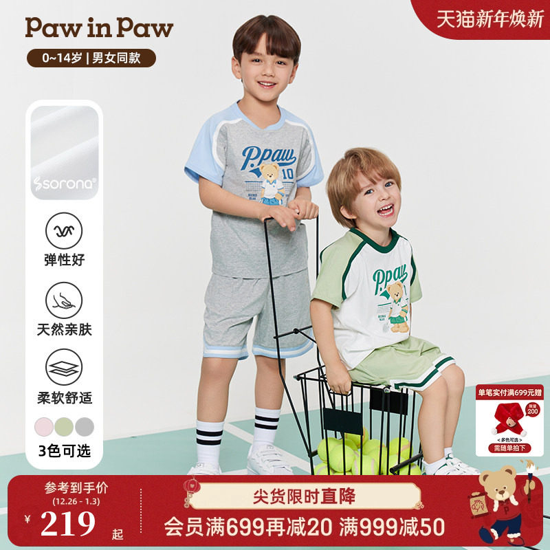 【索罗娜】PawinPaw卡通小熊童装25年春夏新款男女童圆领休闲套装