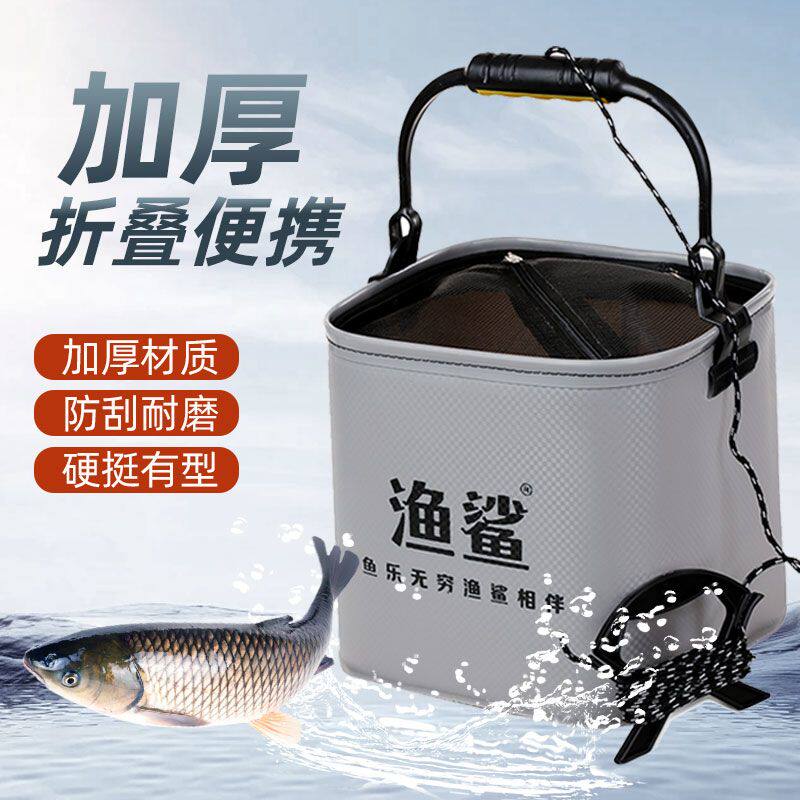 户外渔具新款加厚eva打水桶活鱼桶路亚野钓手提装鱼桶折叠钓鱼桶