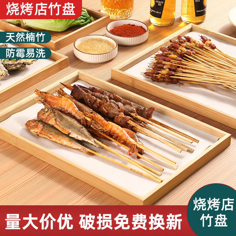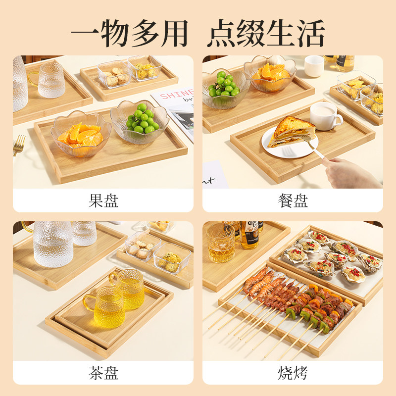 竹木托盘长方形茶盘日式家用水杯盘木制糖果盘茶具餐盘烧烤店炸串