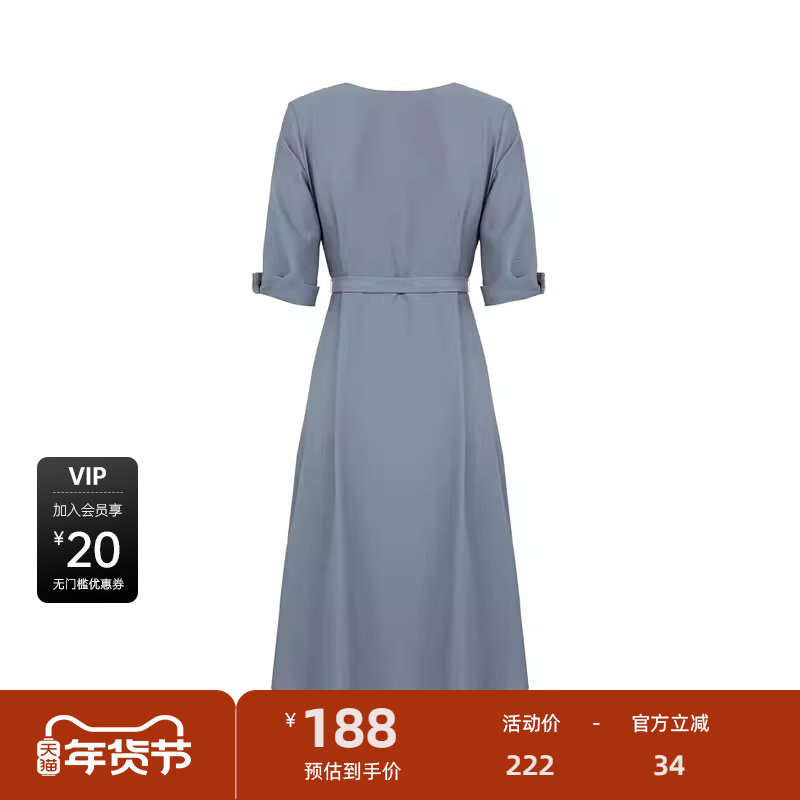 COCOBELLA简约气质黑色收腰极简风连衣裙女优雅短袖长裙FR3033-2