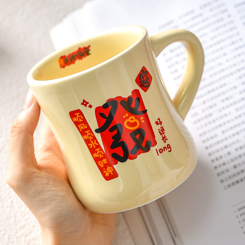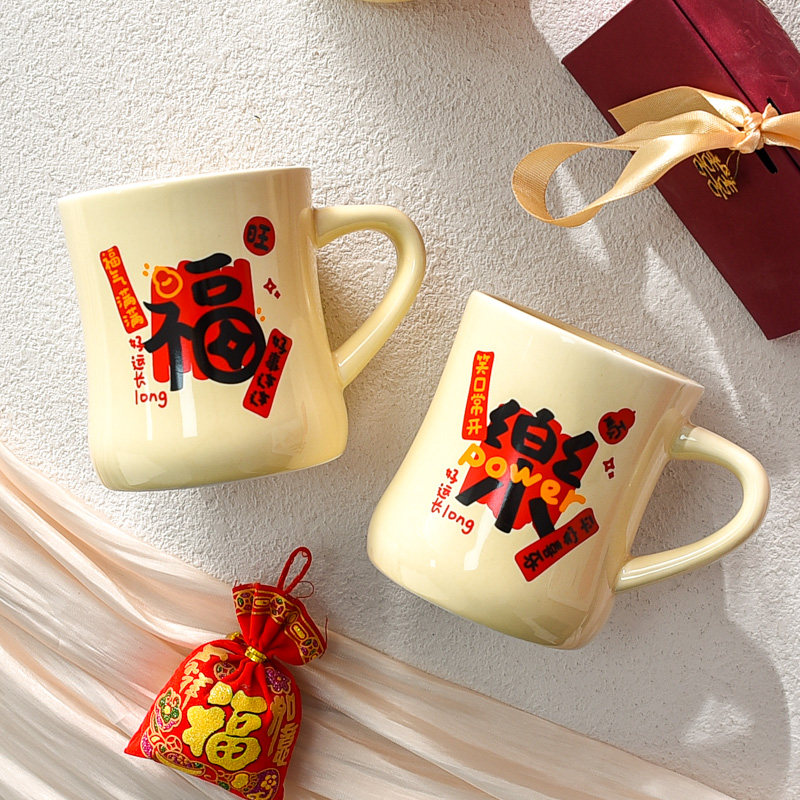 喜庆马克杯陶瓷家用新婚礼物男女情侣无盖中国风喝水杯子新年礼物