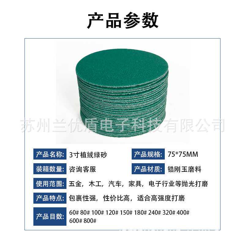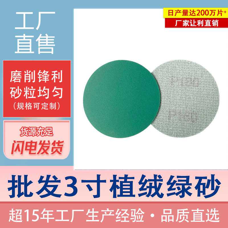 植绒聚酯薄膜砂纸片砂纸3寸抛光汽车绿砂铝合金轮毂打磨厂家