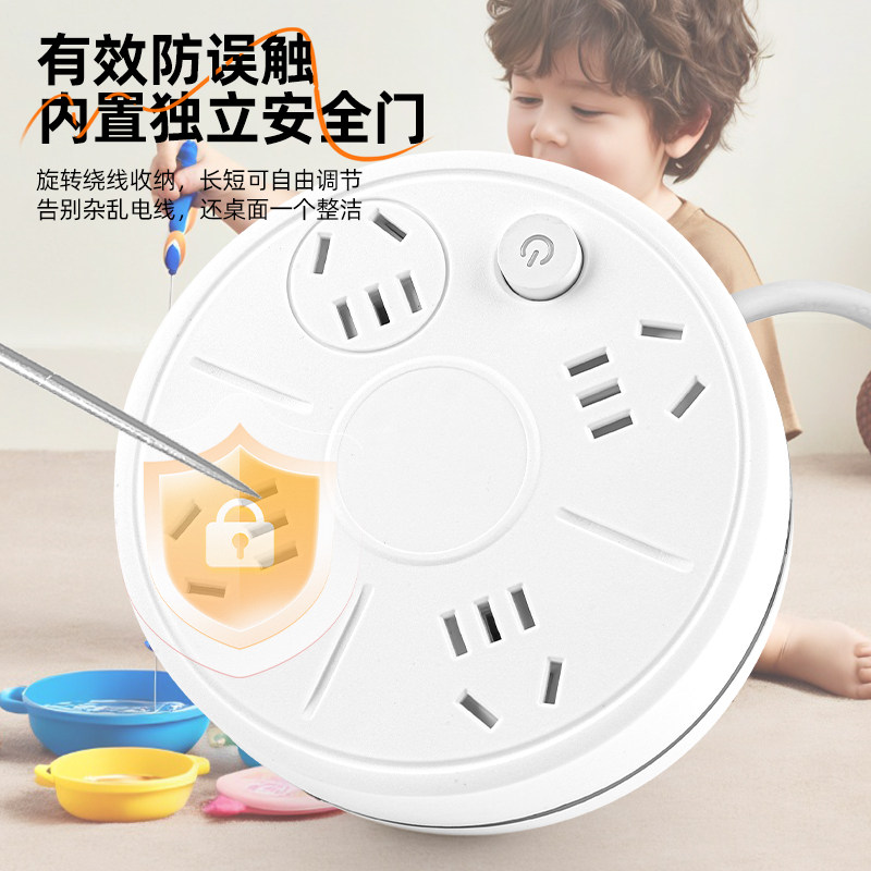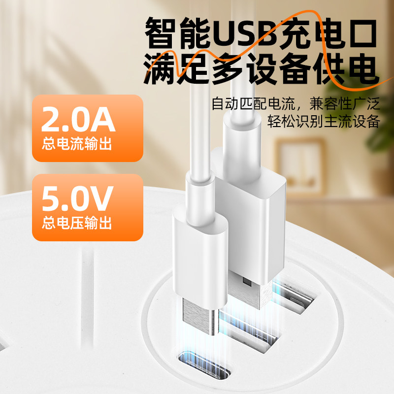 可收纳带线多孔插座智能插排夜灯USB多功能家用排插桌面带开关