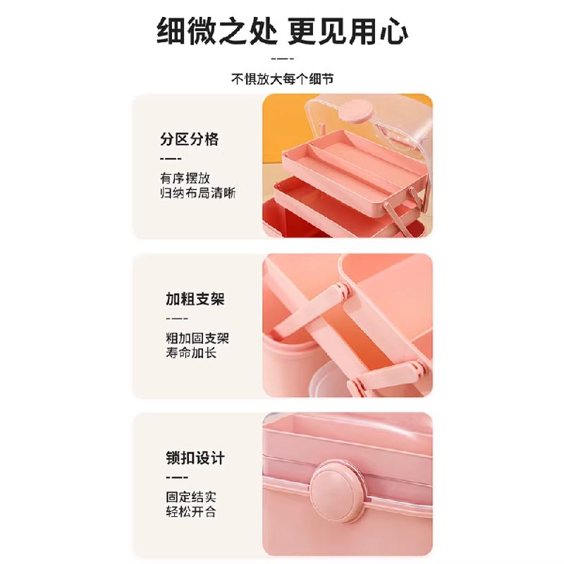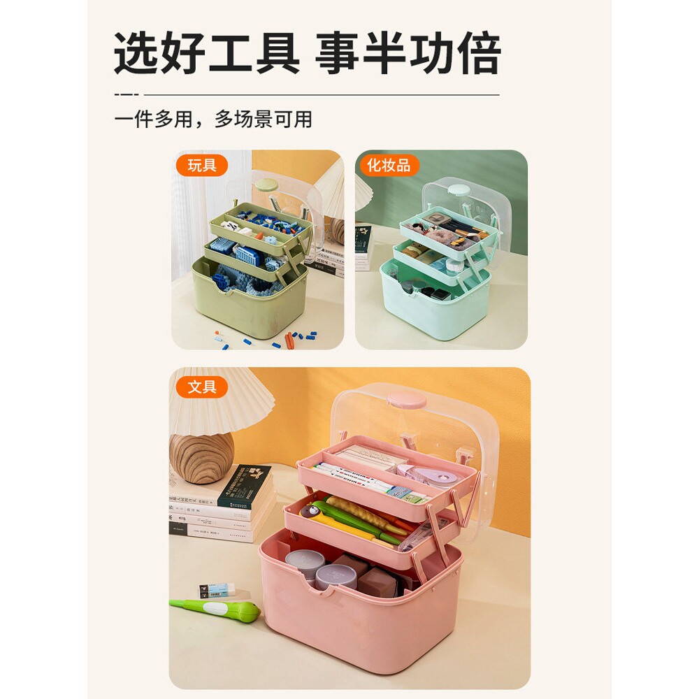 美术生三层工具箱家用毛笔书法收纳箱颜料图画多功能收纳盒手提