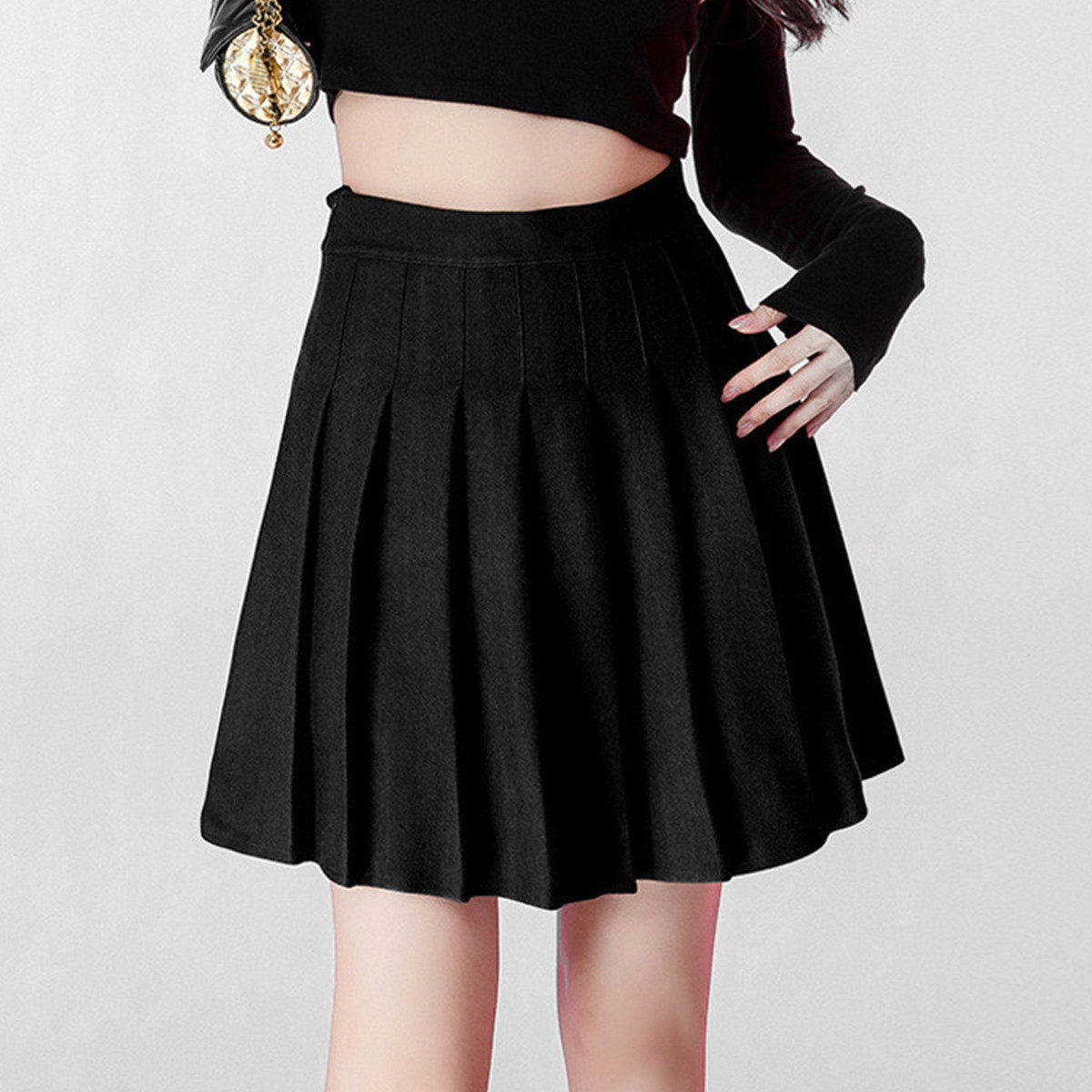one more2026新款百搭学院风半身裙高腰短款小个子毛呢百褶裙