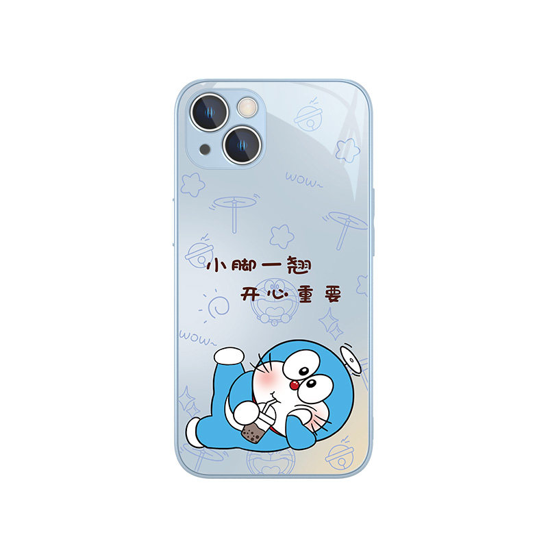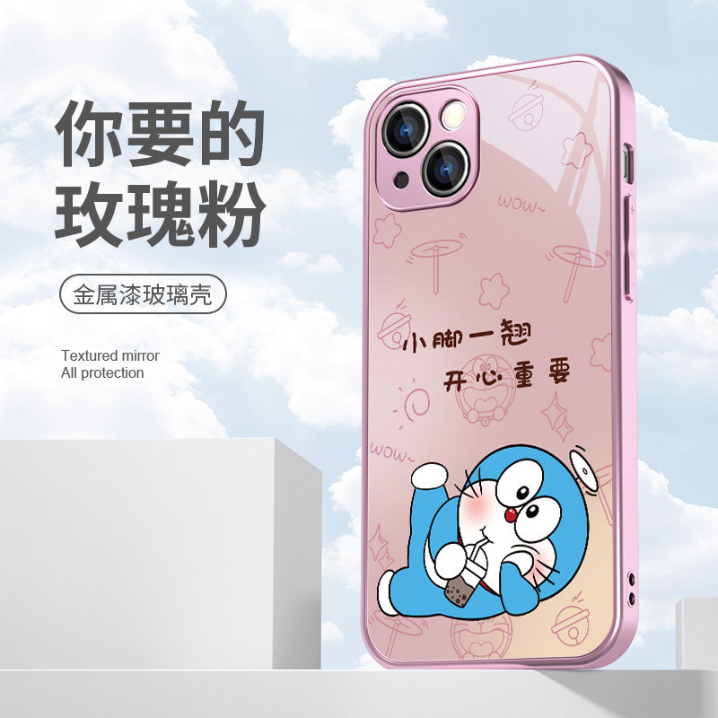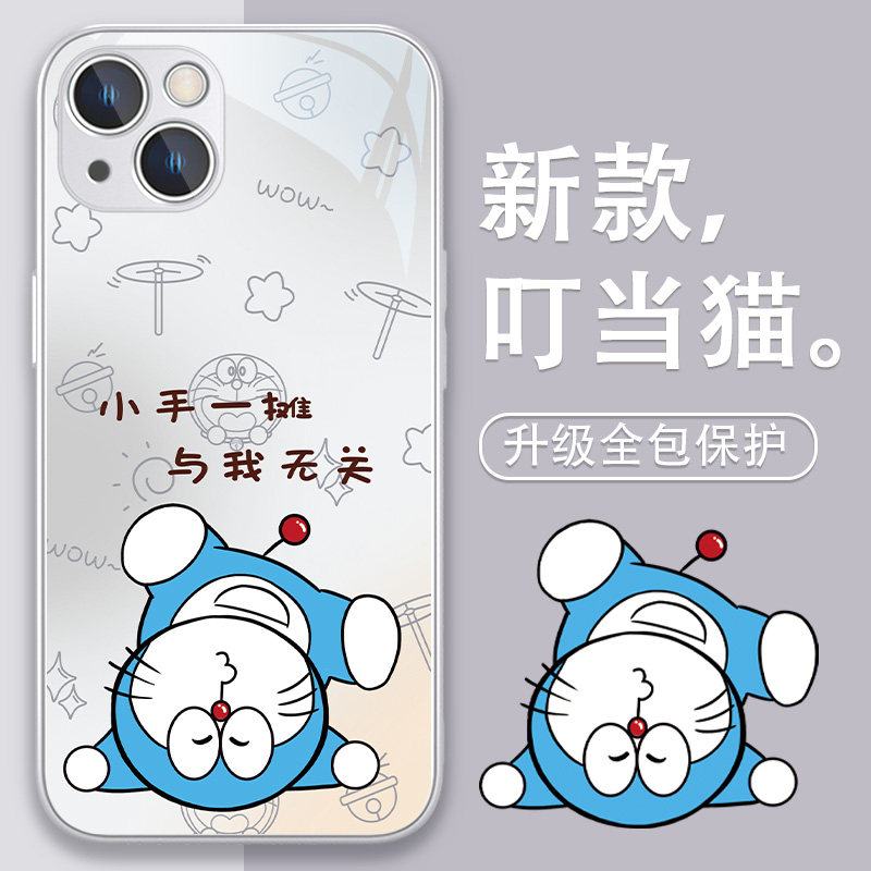 适用iphone15手机壳哆啦a梦苹果14新款13promax卡通16可爱12创意11情侣x高级感xr玻璃xs叮当猫7plus女款8套6