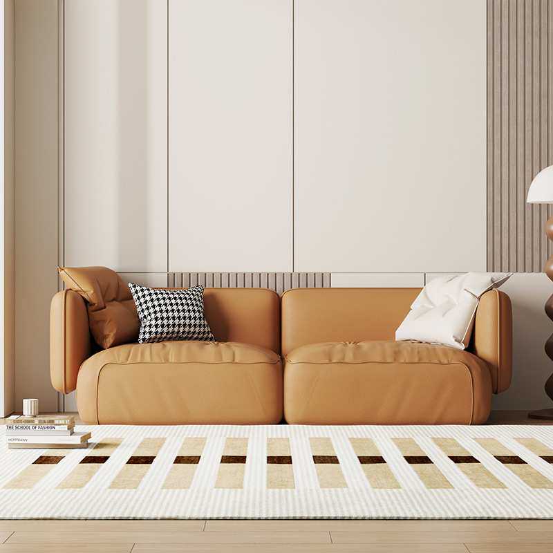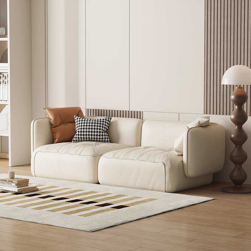 三人位奶油风网红皮艺沙发直排豆腐块吐司沙发客厅现代轻奢小户型