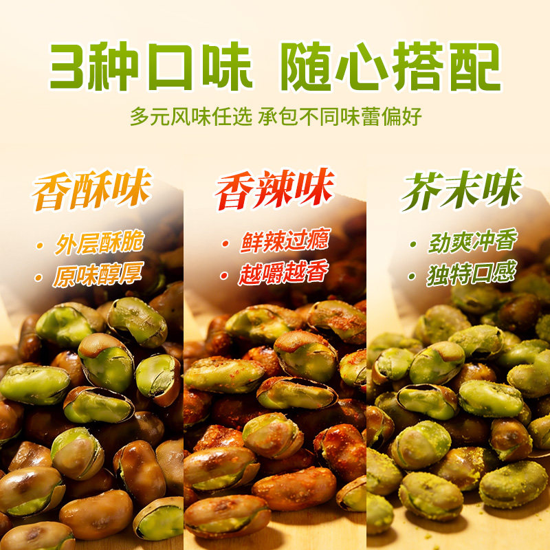 云南新鲜蚕豆翡翠绿心三种口味香辣零食干货原味芥末味香酥酥脆