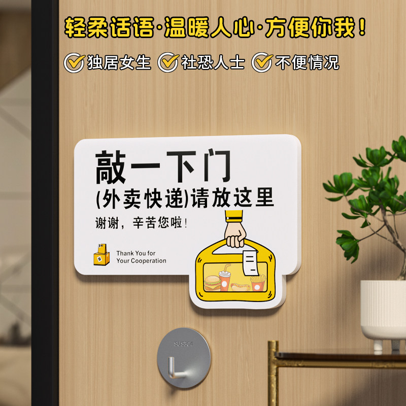 外卖放门口指示牌快递置物架请挂钩这里篮子门外存放架子放置处门牌请勿敲门按一下门铃挂餐神器装饰挂牌订制