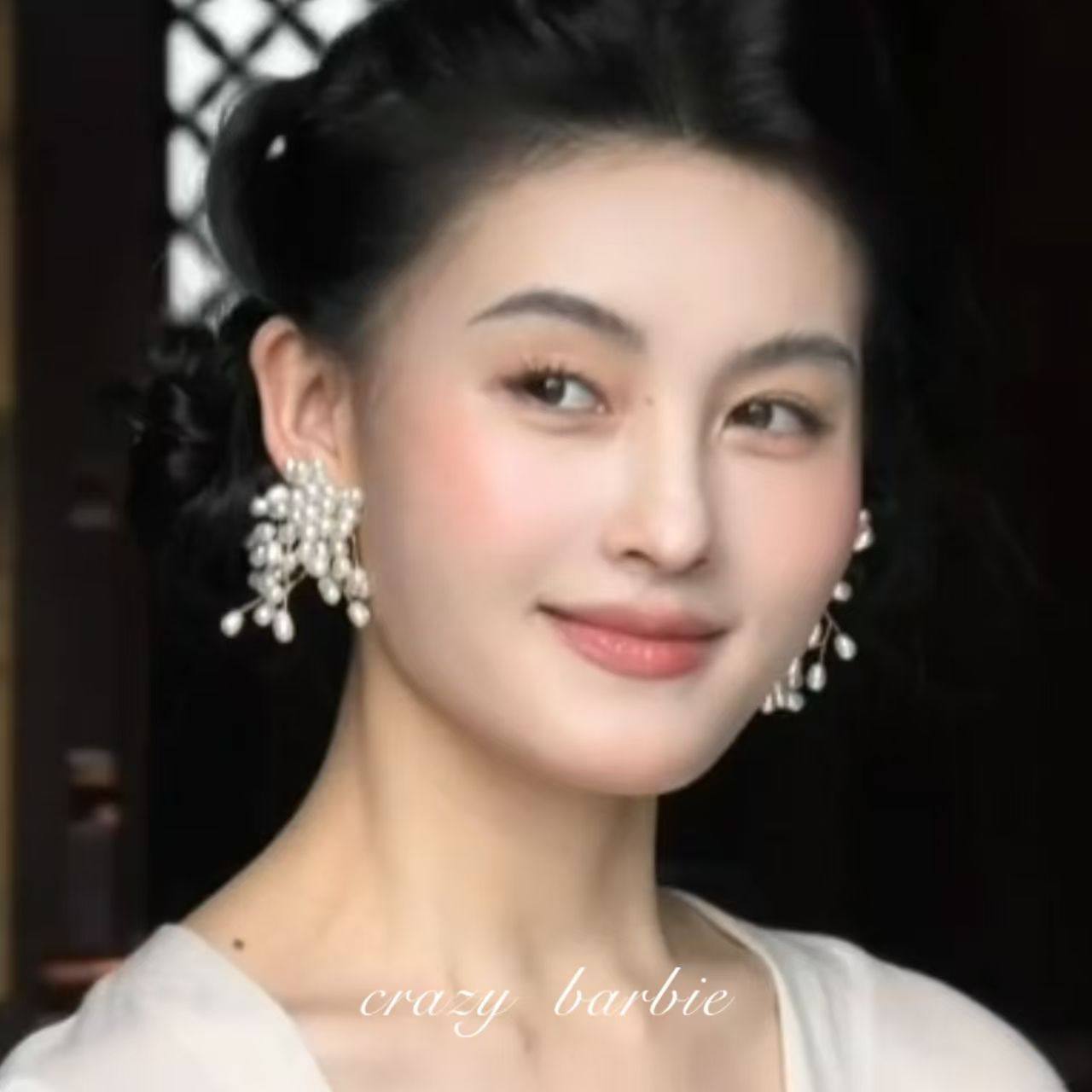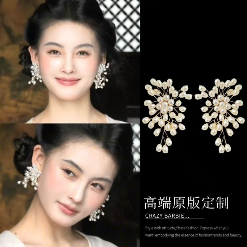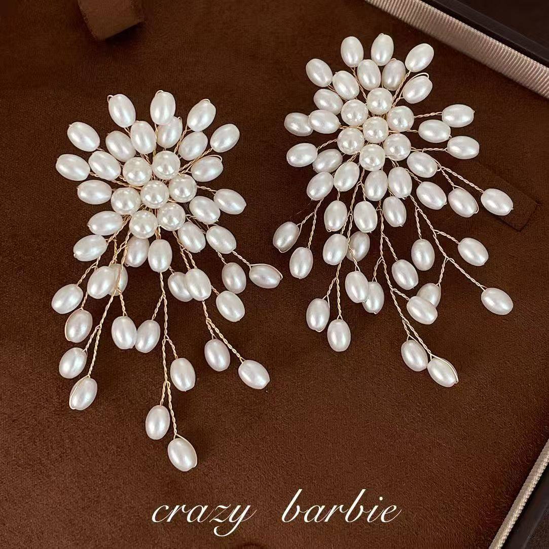 法式烟花仿珍珠流苏耳环轻奢高级感小众耳饰设计感耳钉2025新款女