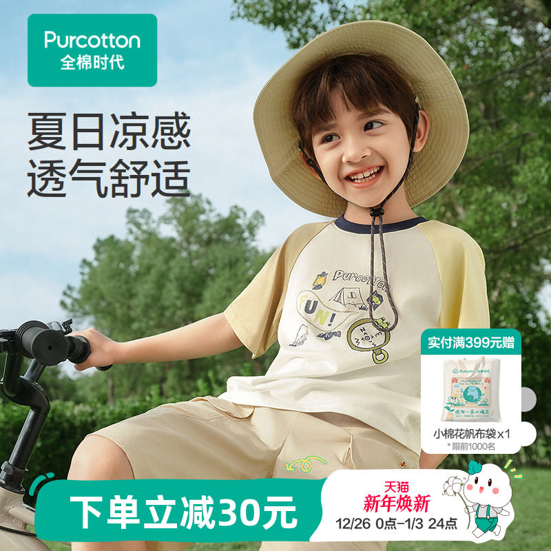 全棉时代年夏季新款男童凉感插肩袖T恤儿童印花图案可爱短袖