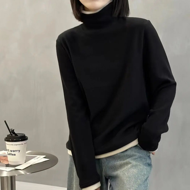 半高领内搭加绒加厚打底衫女冬一体绒可外穿中领螺纹T恤保暖上衣