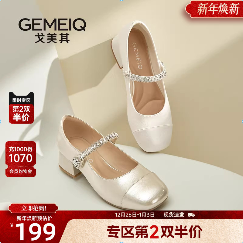 戈美其商场同款粗跟玛丽珍女鞋配裙子2025新款中跟气质浅口单鞋子