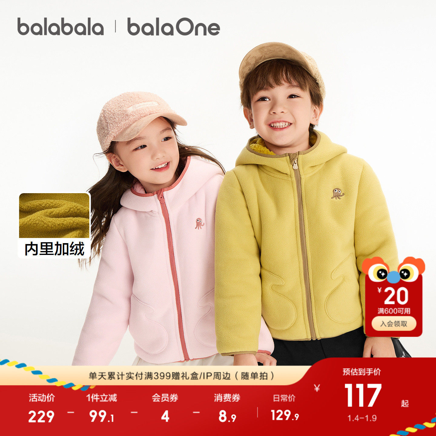 巴拉巴拉童装儿童外套女童男童新款上衣2025秋冬装摇粒绒防静电潮