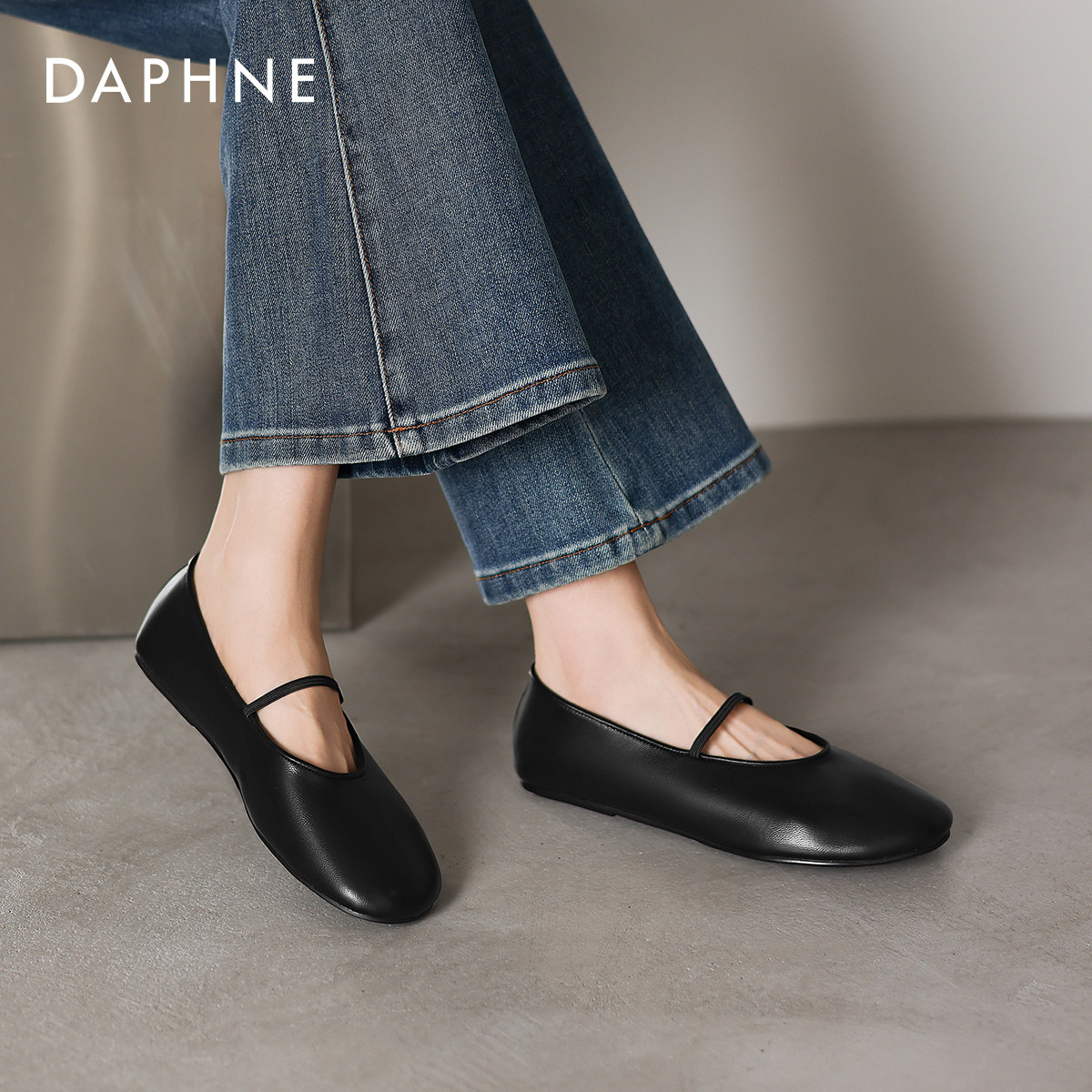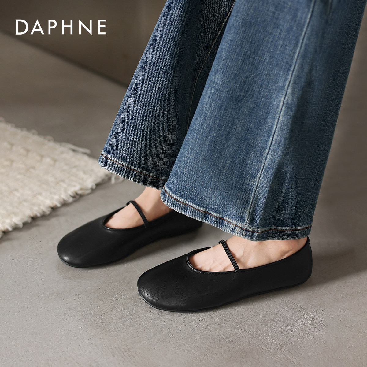 达芙妮黑色单鞋2026新款春季法式绝美玛丽珍鞋圆头平底小皮鞋女款
