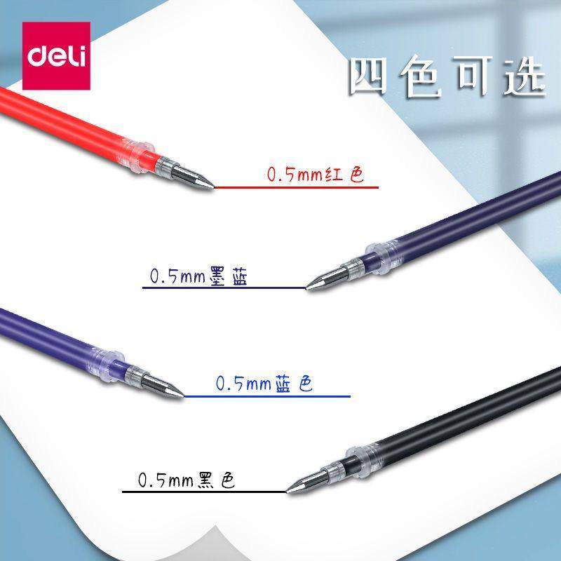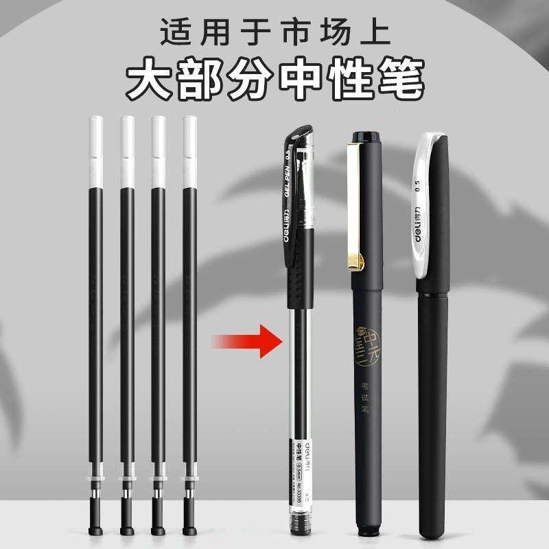 得力笔芯中性笔替芯子弹头0.5mm学生通用拔盖式黑红蓝签字水笔芯