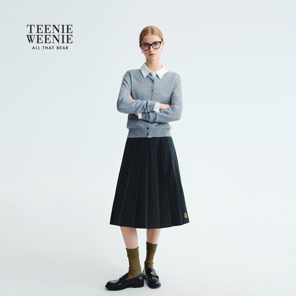【可机洗+美利奴羊毛】TeenieWeenie小熊女装25秋款圆领针织开衫