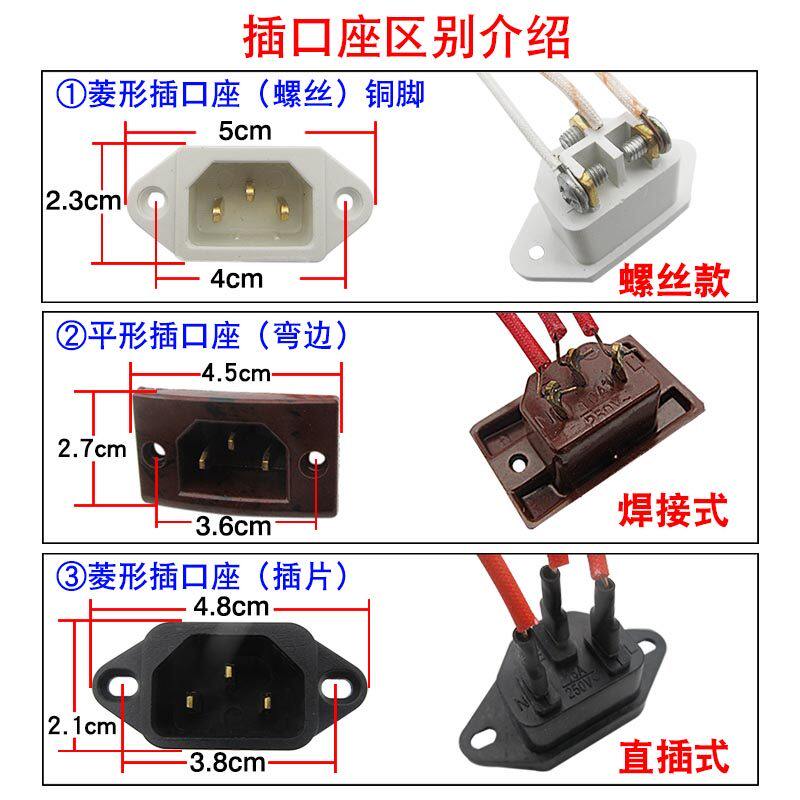 电炒锅电锅配件电源插座插头电饭锅电压力锅通用三孔品字电源插口