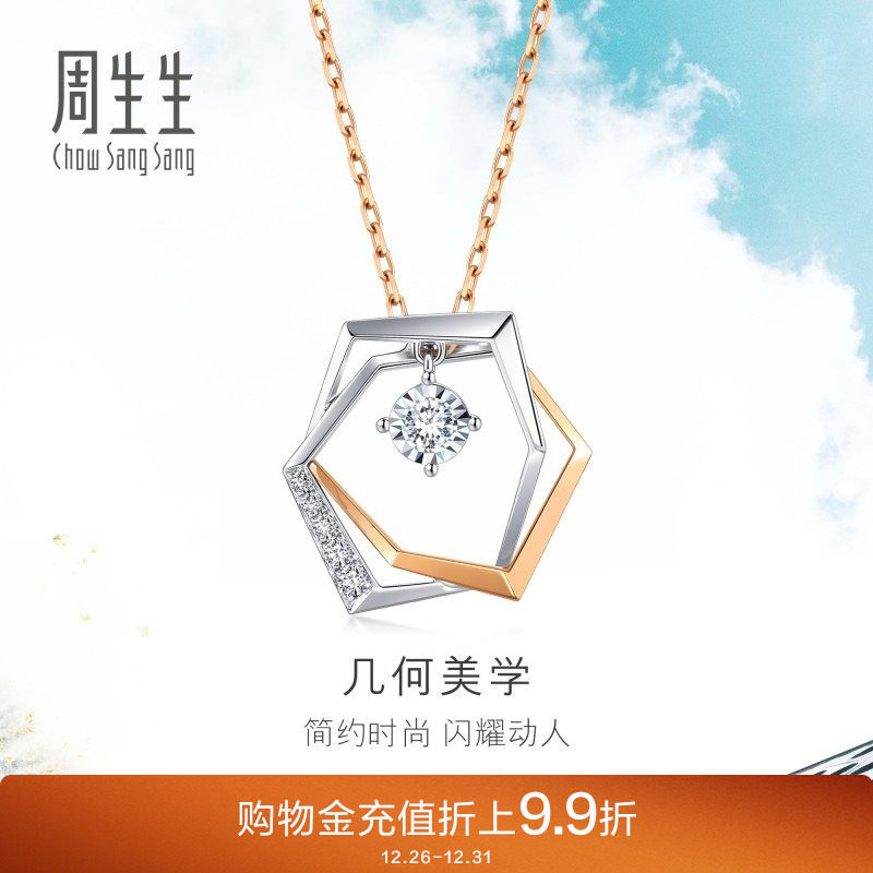 周生生18K白色及玫瑰色黄金炫幻几何钻石项链套链93042U