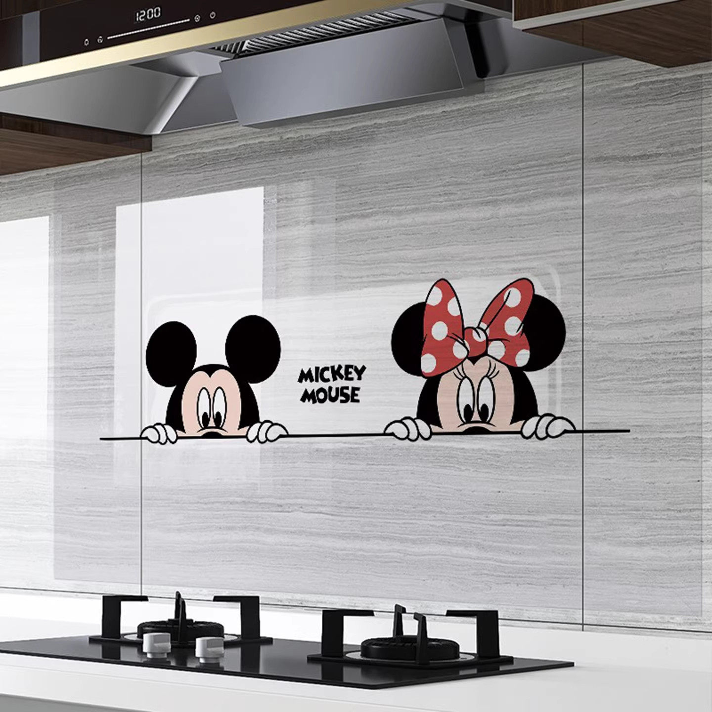 灶台米奇静电厨房防油贴纸阻燃耐高温自粘墙纸油烟机墙面装饰贴膜