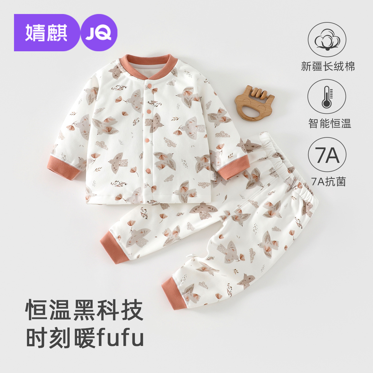 婧麒婴儿夹棉秋衣套装秋冬季宝宝保暖衣服秋裤儿童分体家居内衣