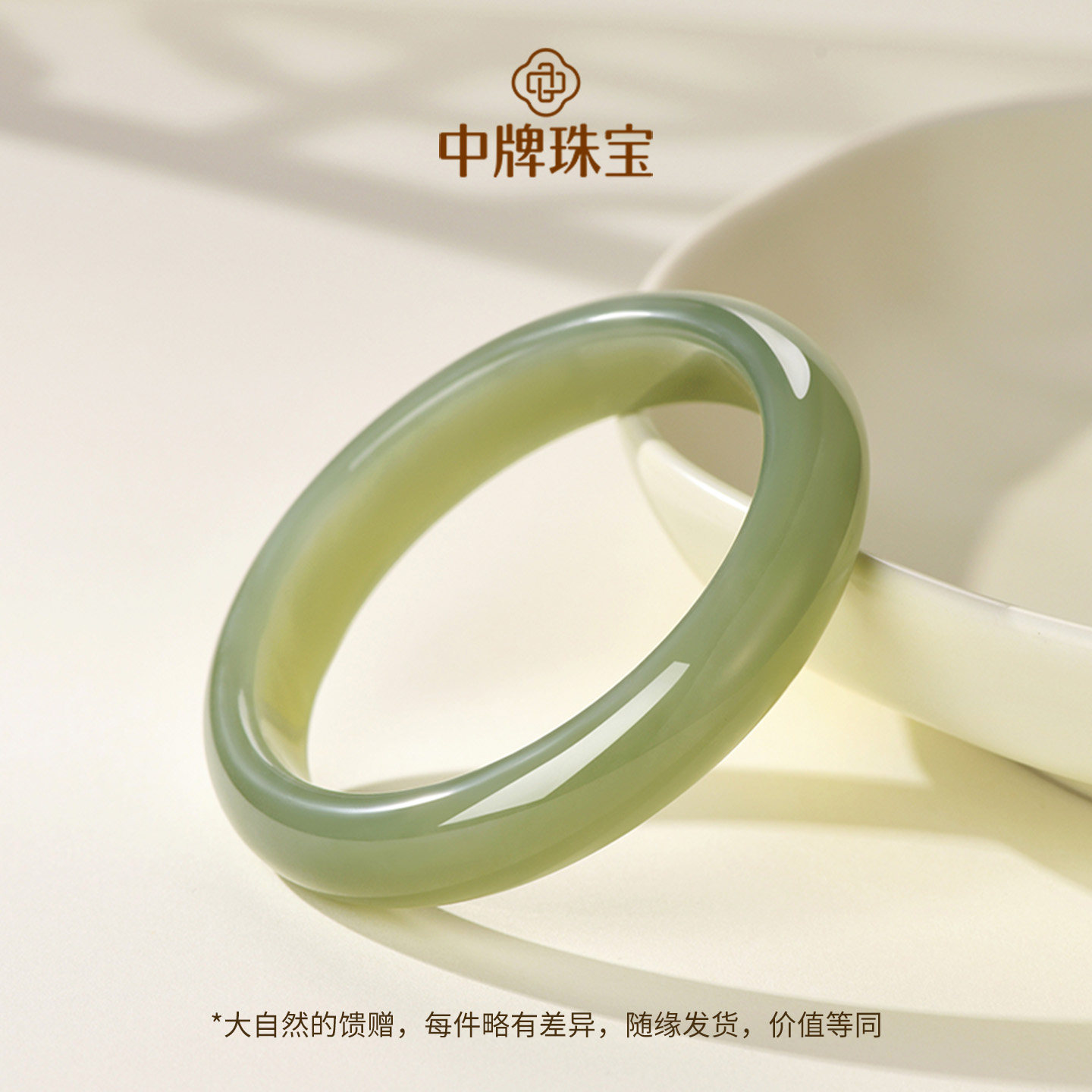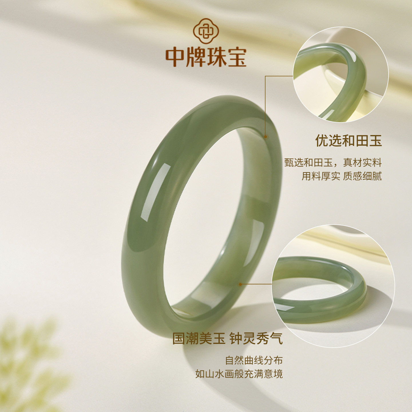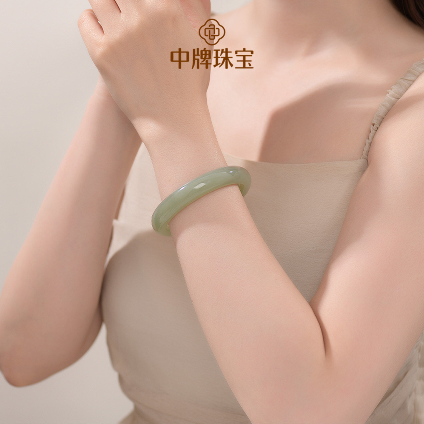 潮宏基倾玉足金翡翠和田玉檀木手链黄金手串一款两戴纪念礼物