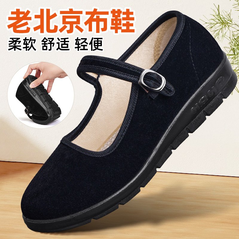 老北京布鞋女棉鞋平底单鞋防滑上班工作鞋黑色广场舞鞋妈妈鞋软底