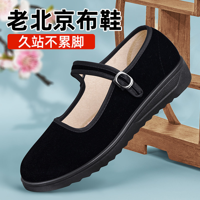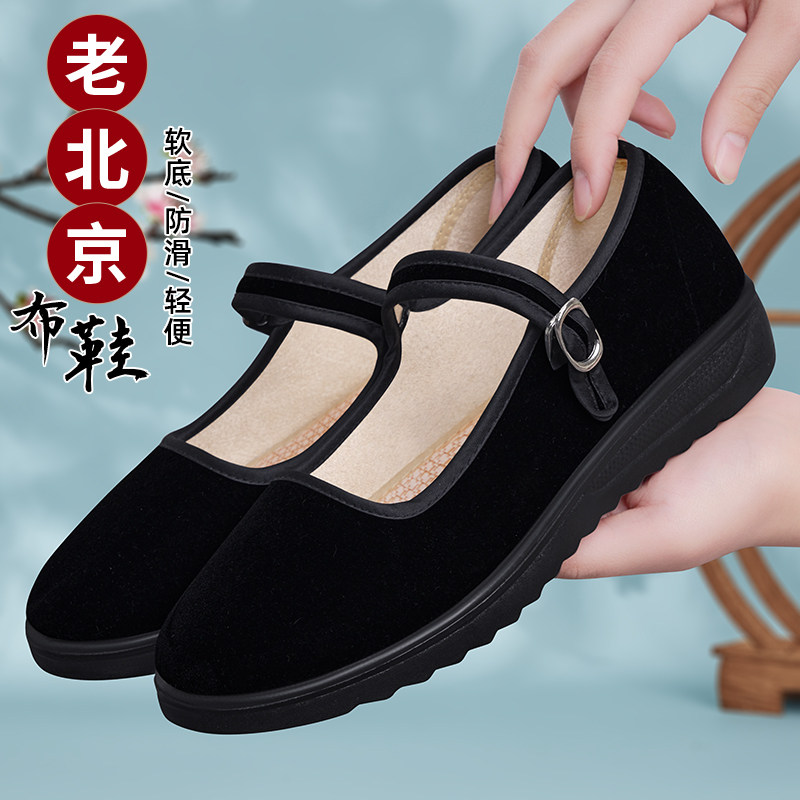 老北京布鞋女2026新款不累脚防滑牛筋底妈妈鞋上班软底黑工作鞋