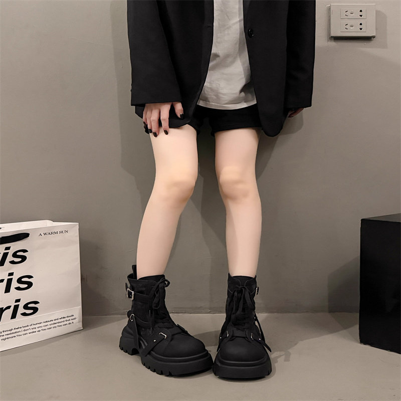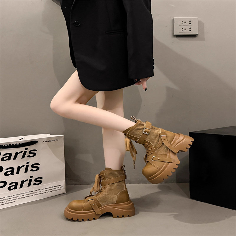 厚底马丁靴女2025秋季新款百搭增高显瘦短靴棕色黑色高跟防滑圆头