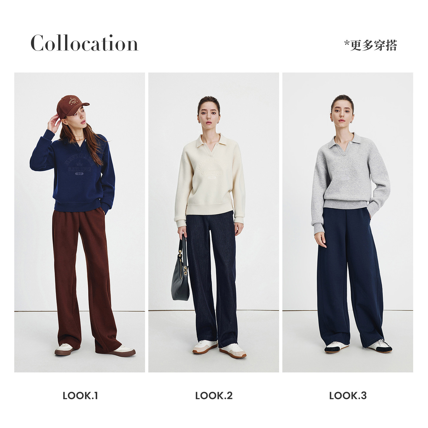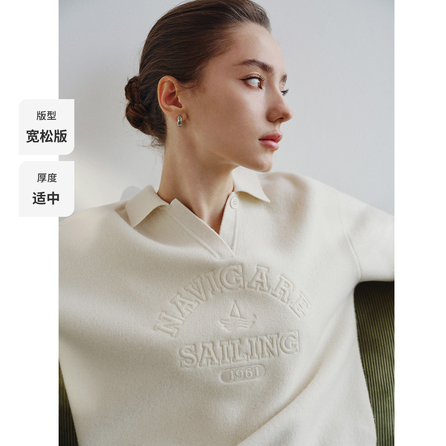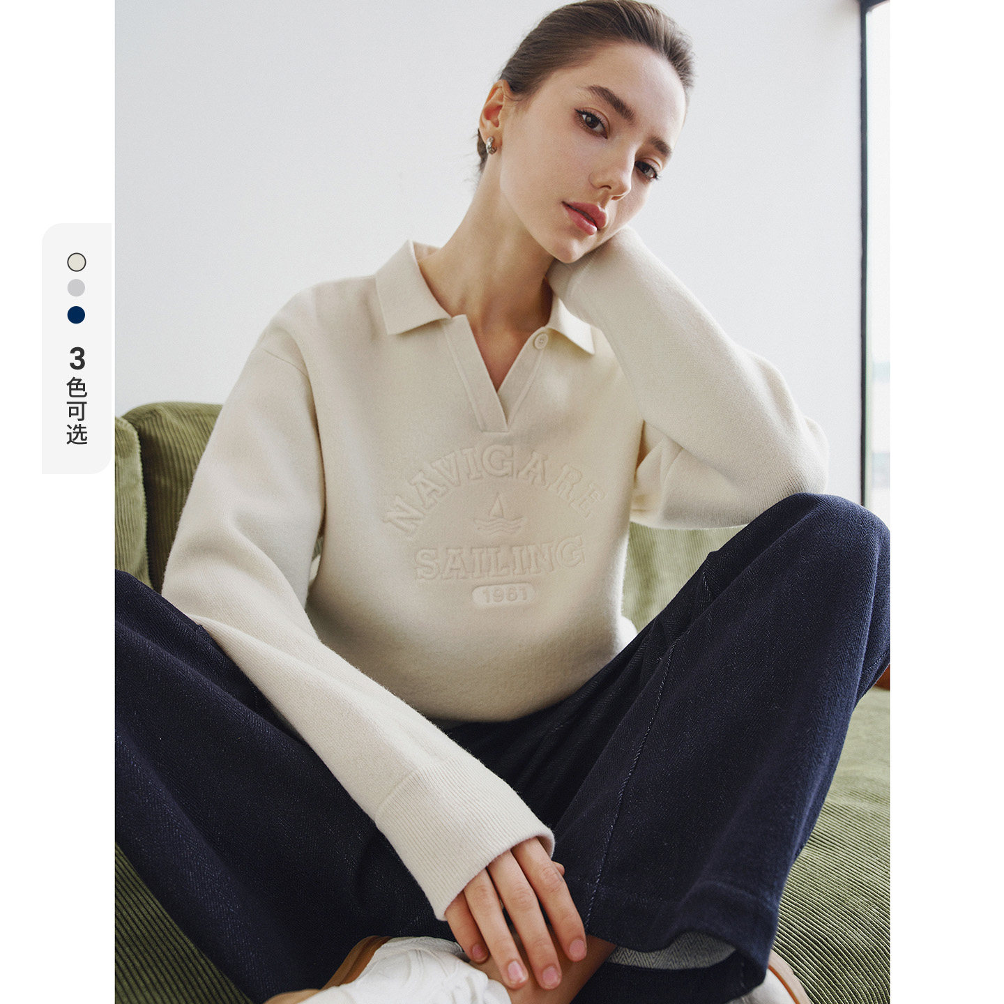 Navigare意大利小帆船纯羊毛针织衫女士2025秋季新款翻领套头毛衣