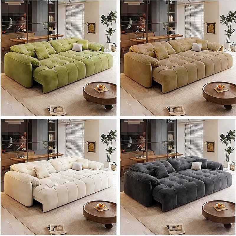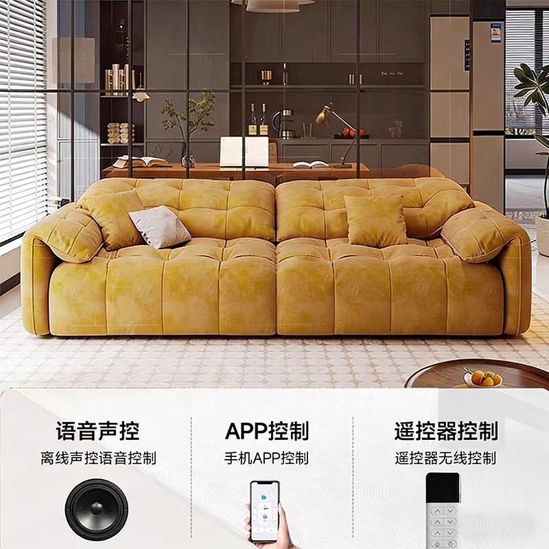 多功能伸缩电动沙发床奶油风客厅直排三四人位奶油风布艺沙发新款