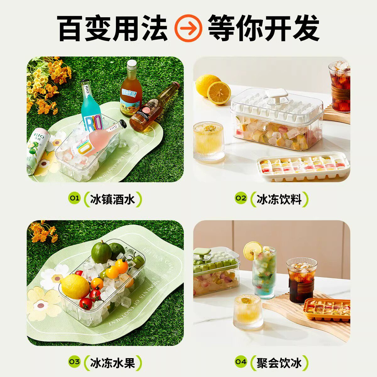 大容量冰块按压模具食品级带盖冰格模具冻冰块神器冰箱自制冰块