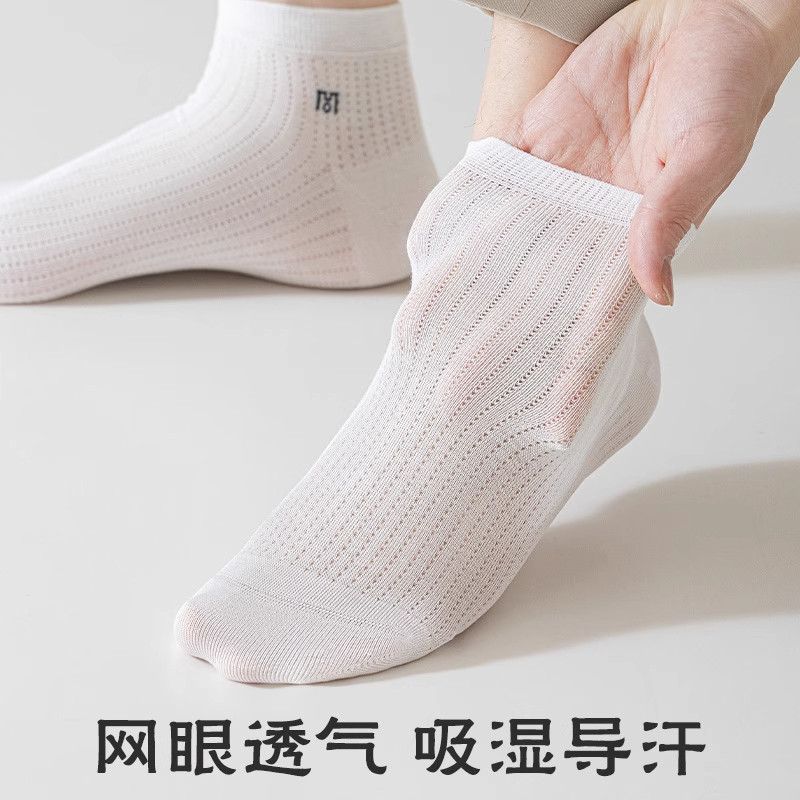 白色袜子男夏薄款纯棉防臭短袜网眼吸汗透气男士运动袜夏天短筒袜
